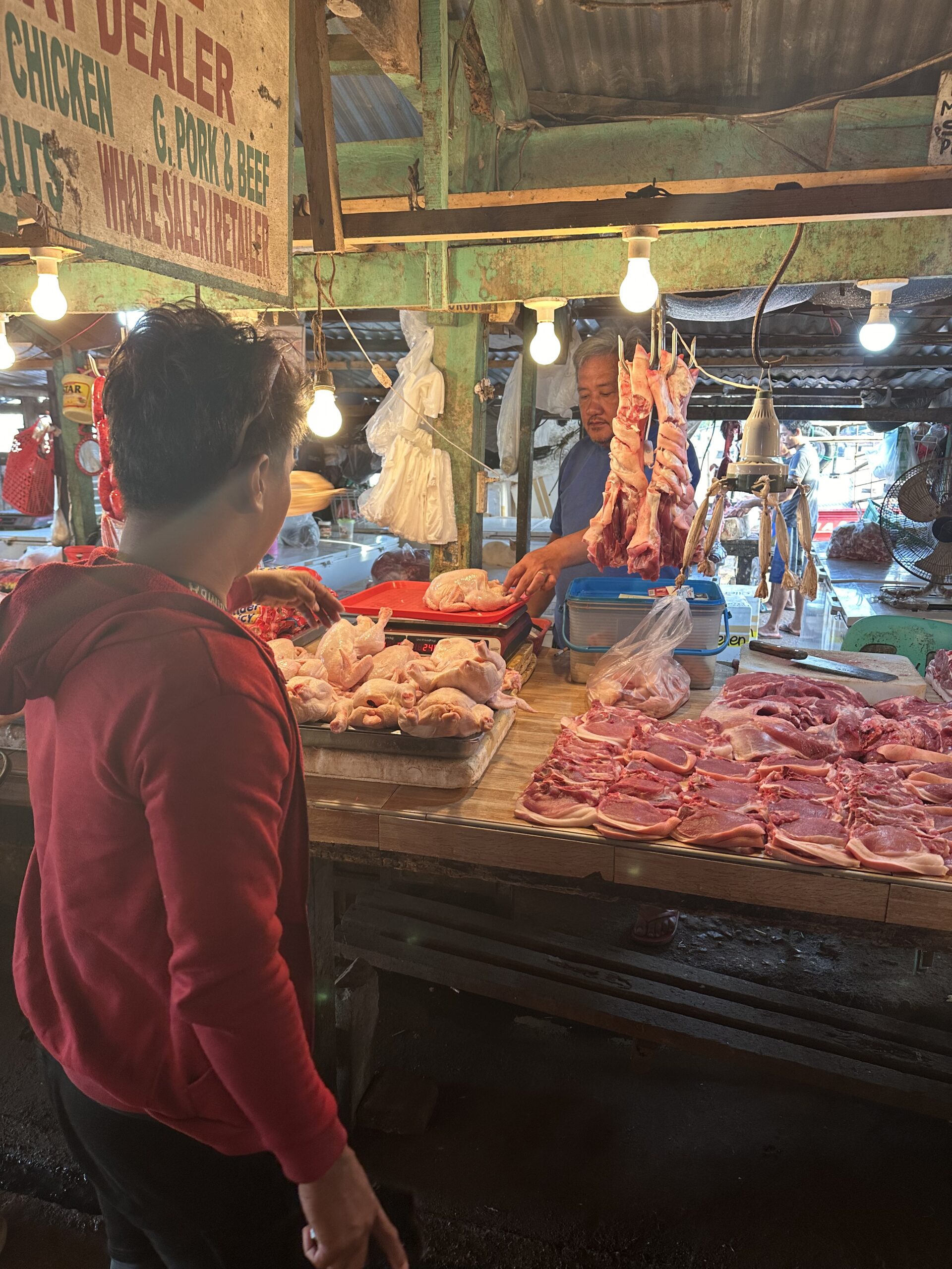 Después del tour cenamos en Maa’s Grill, donde probamos pork adobo, un plato típico filipino con sabor intenso y marinados locales.